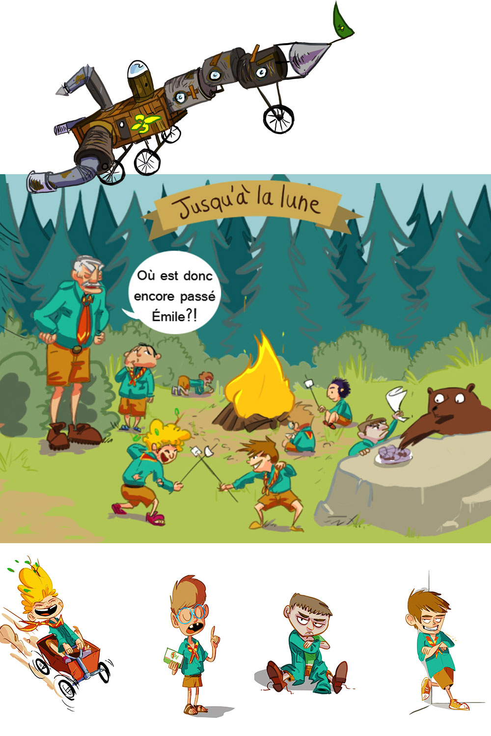 Stripop a proposé un projet de BD numérique mettant en scène des jeunes scouts qui souhaitaient se rendre sur la lune et construisant une fusée dans un repère secret.